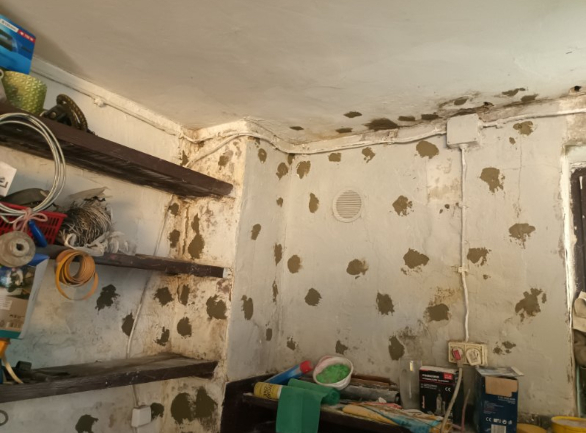 Zabezpieczenie zawilgoconych ścian i stropu w pomieszczeniu gospodarczym. Wykonanie iniekcji strukturalnej (objętościowej) w celu odtworzenia izolacji przeciwwilgociowej wewnątrz muru.